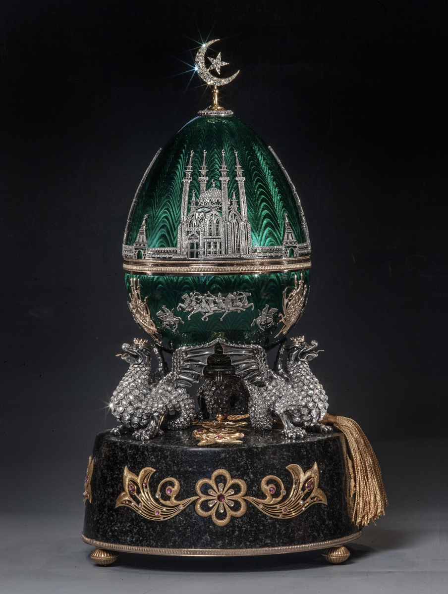 [COLOR=var(--zenColorTextAndIconsPrimaryLow)]Здесь галерея - листайте. Пасхальное яйцо "Мечеть Кул-Шариф", золото, серебро, позолота, бриллианты, розы, кахолонг, рубин, гранаты, яшма, габр, нефрит, прозрачная эмаль по гильошированному фону, 2014 год