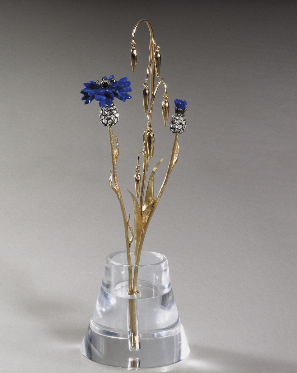 [COLOR=var(--zenColorTextAndIconsPrimaryLow)]Ювелирная работа "Васильки и овес": бадахшанский лазурит, горный хрусталь, алмазы в огранке "роза", золото, серебро, позолота[/COLOR]