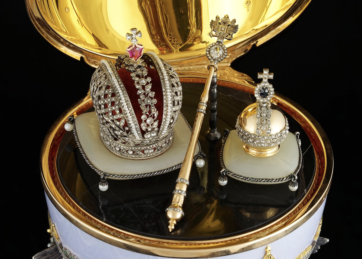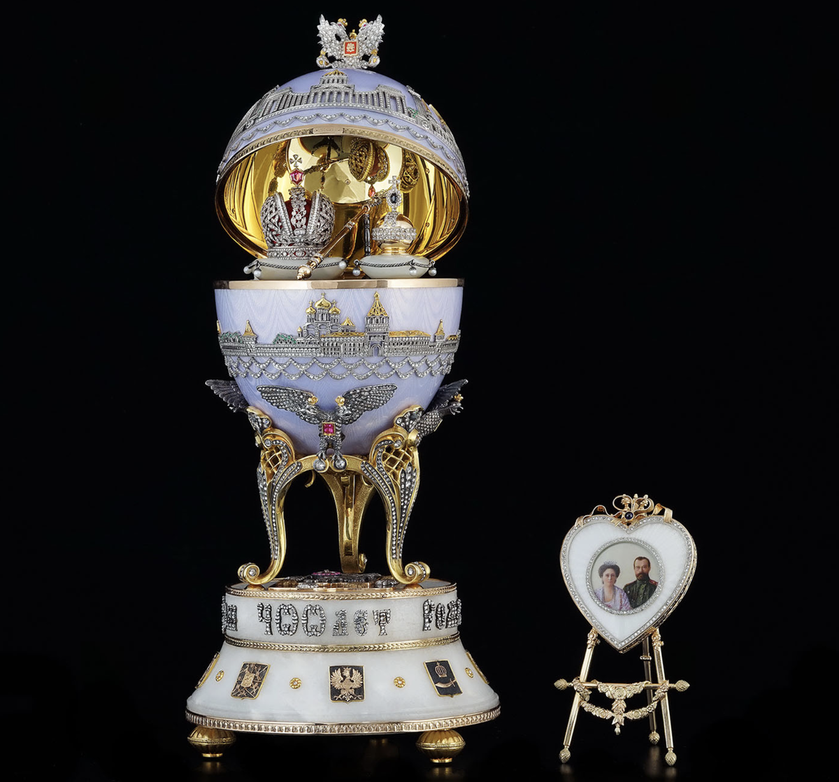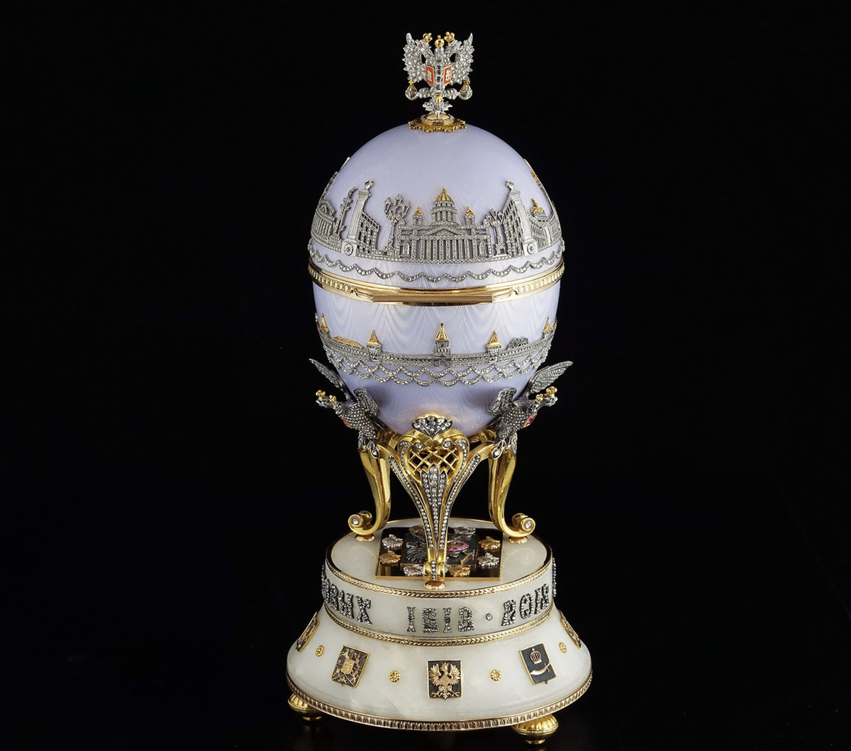 [COLOR=var(--zenColorTextAndIconsPrimaryLow)]Пасхальное яйцо "400 лет Дома Романовых". Золото, бриллианты, алмазы в огранке "роза", рубины, изумруды, сапфиры, белый нефрит, черная яшма, мрамор, кость мамонта[/COLOR]