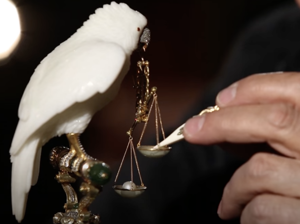[COLOR=var(--zenColorTextAndIconsPrimaryLow)]Ювелирное произведение "Весы" с белым попугаем. В шкатулках из нефрита хранятся маленькие грузики 5,10 граммов для взвешивания))