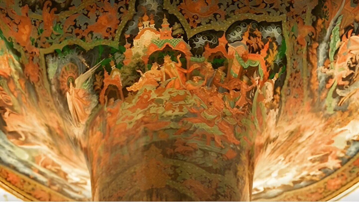 Андрей Малахов был очарован внутренним убранством особняка, особенно его восхитили расписные потолки и дивные колонны из ценных пород дерева и камня. Картины, изображенные на потолках, задумывались как оптические иллюзии, когда объемное изображение достигается за счет необычного наслоения красок.