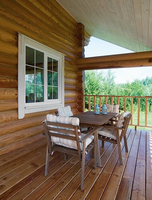 Материал: оцилиндрованное бревно из сибирской лиственницы.