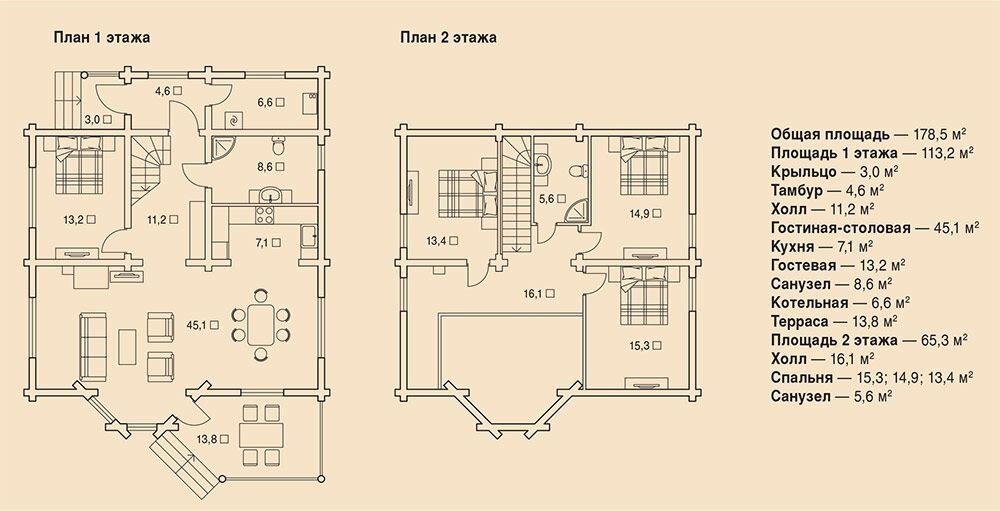 Классная планировка дома из оцилиндрованного бревна: второй свет и 4 спальни