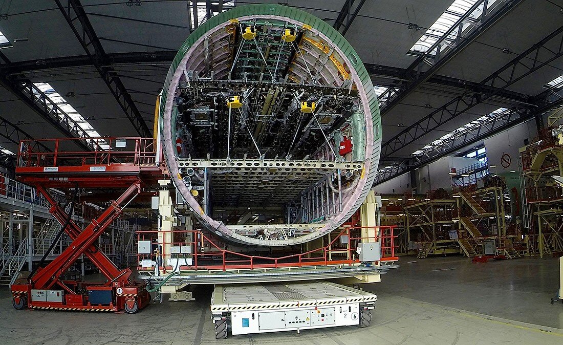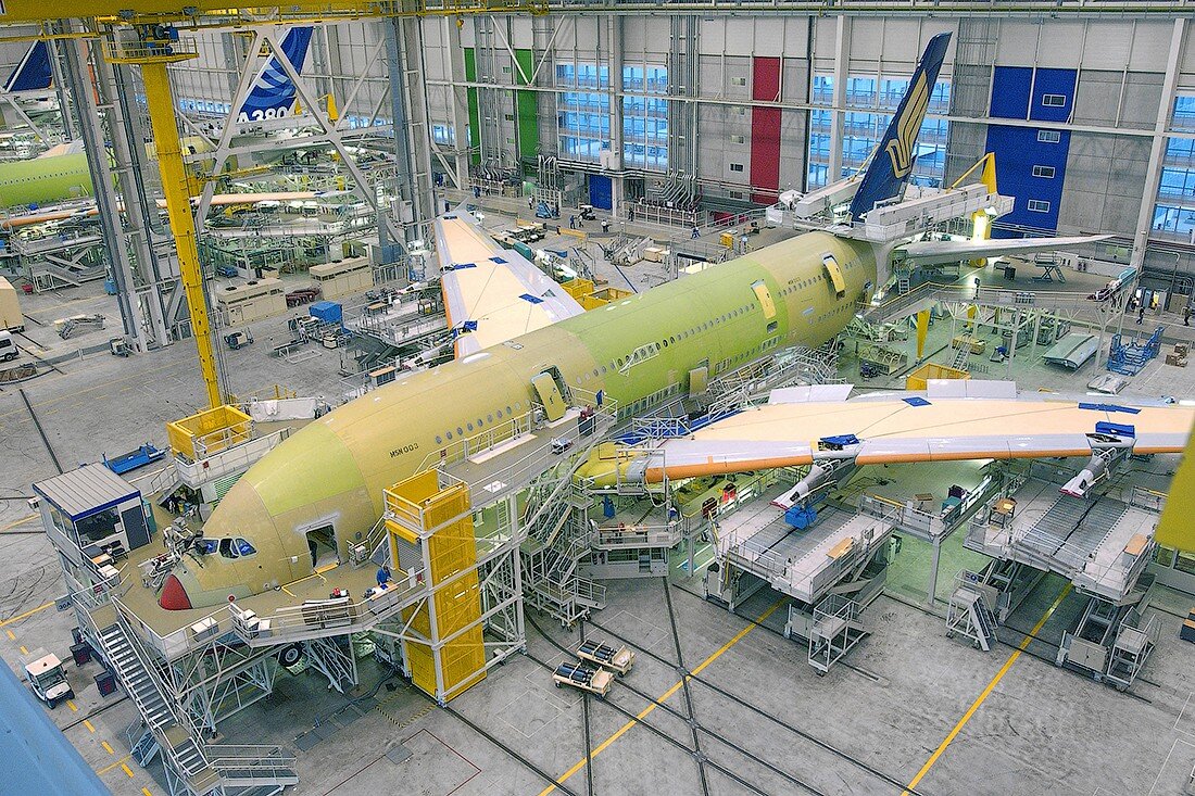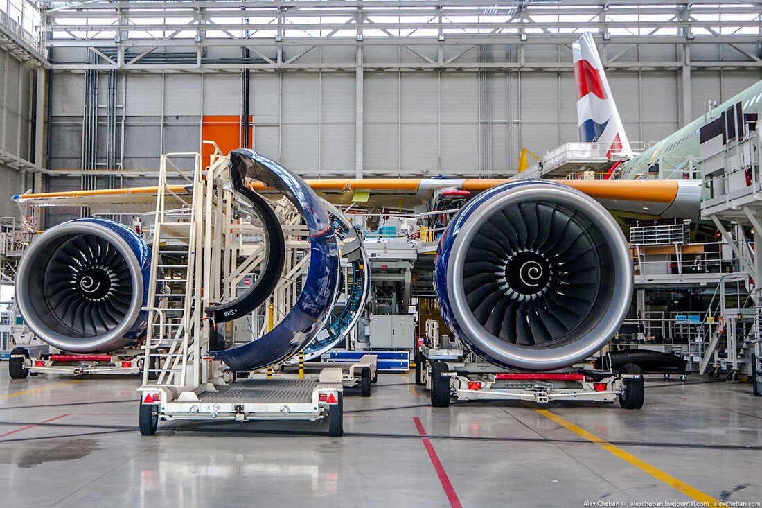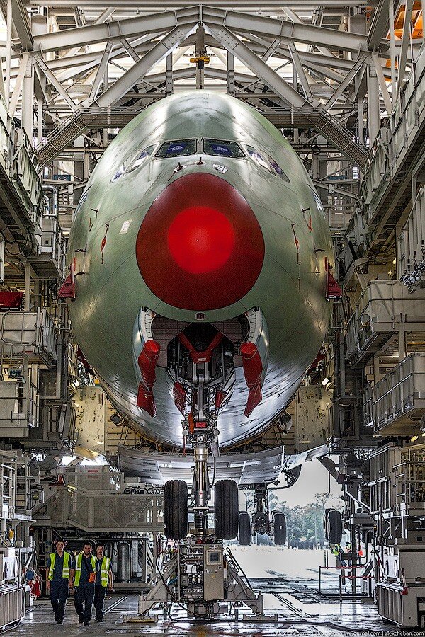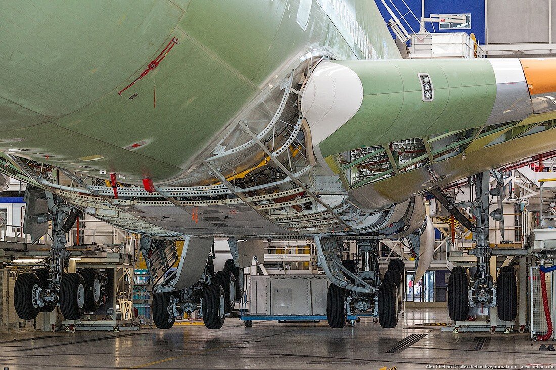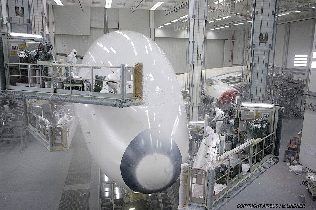 Длина сборочного цеха А380 составляет 490 м, ширина — 250 м, а высота — 46 м.