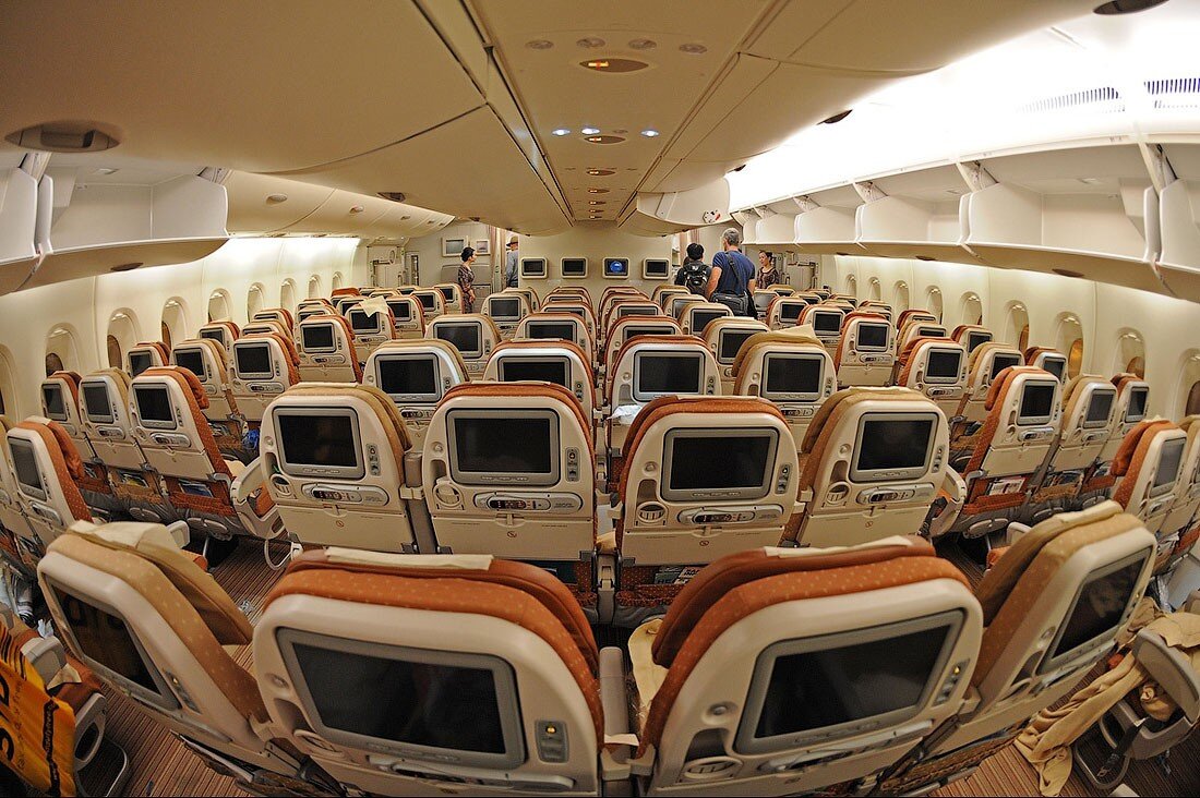 Компоновка на максимальное количество пассажиров (853) не применялась. Типовая компоновка на 525 мест: 10 в первом классе, 76 в бизнес-классе и 439 в экономе.