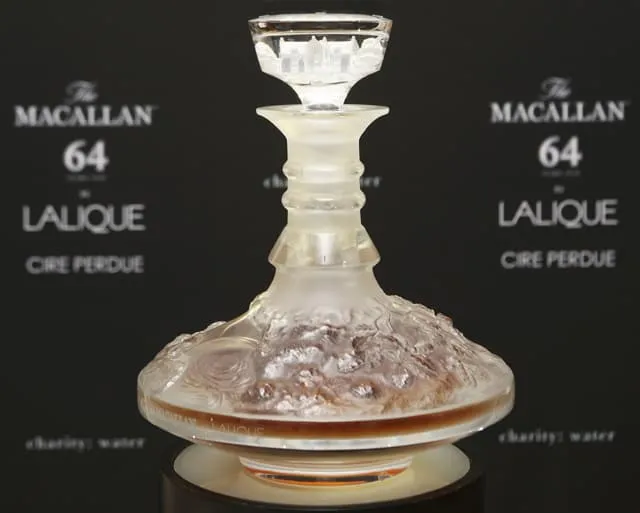 Последний раз Macallan 64 от Lalique Cire Perdue был продан на аукционе в 2010 году за $464 000.