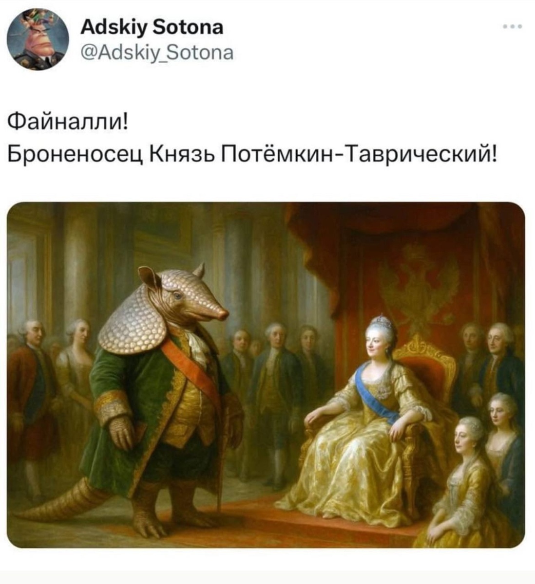 Я сначала не въехала, что не так на этой картинке. Броненосец «Князь Потемкин Таврический» - это название корабля.