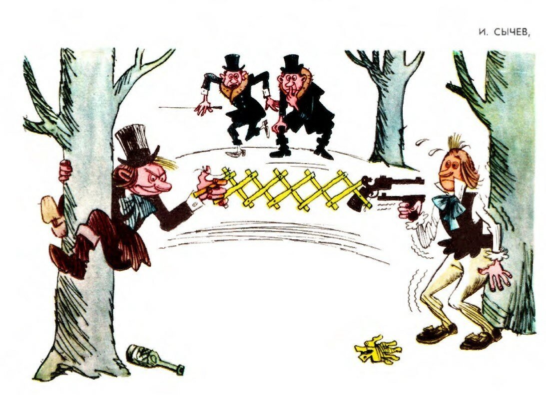 https://webpulse.imgsmail.ru/imgprev...5-49736b4850a3А так, может быть, нарисовал бы дуэль И. СычевНаверное, так бы изобразил беспощадный борец с бюрократией, приспособленчеством и ханжеством Игорь Ефимович Сычев.
