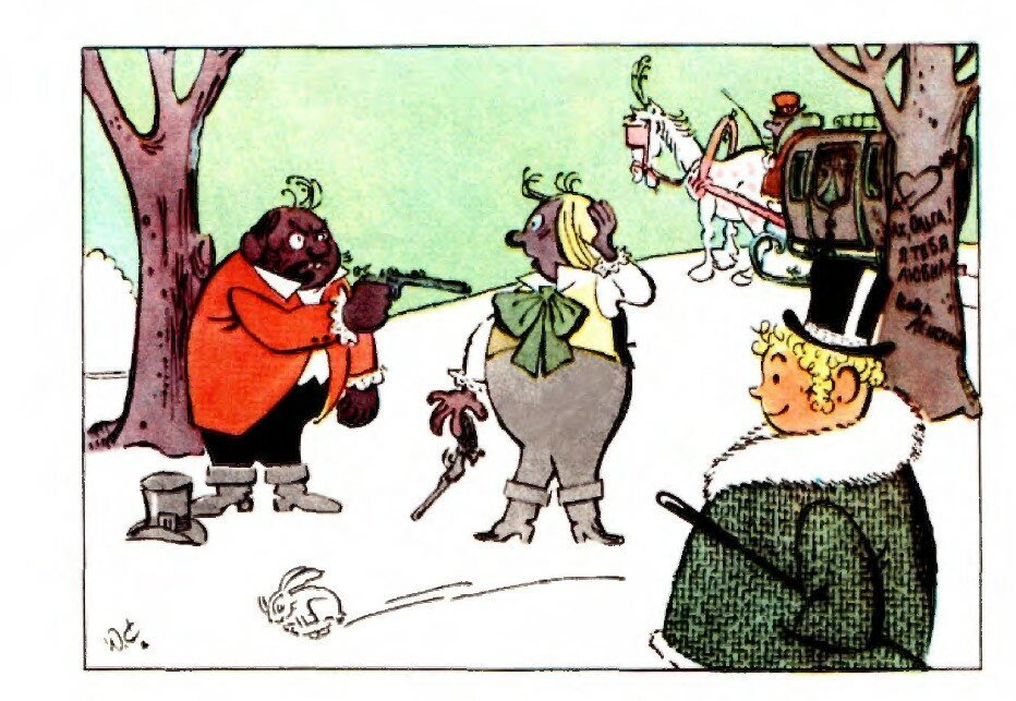 Как карикатуристы изобразили бы дуэль Евгения Онегина и Владимира Ленского