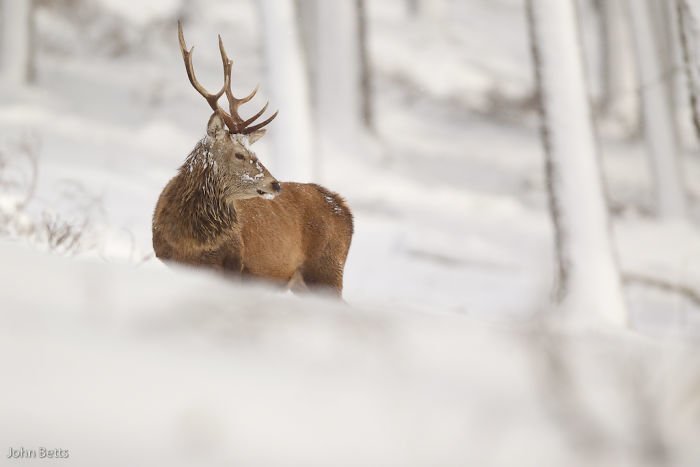 В 2012 году Джону посчастливилось сделать несколько удивительных снимков оленей в период снежной шотландской зимы. Только взгляните на эти безмятежные сказочные изображения.