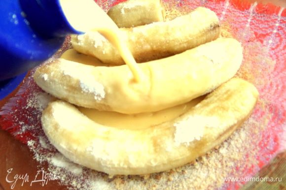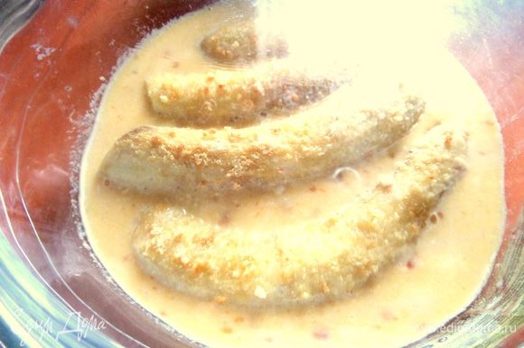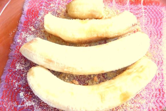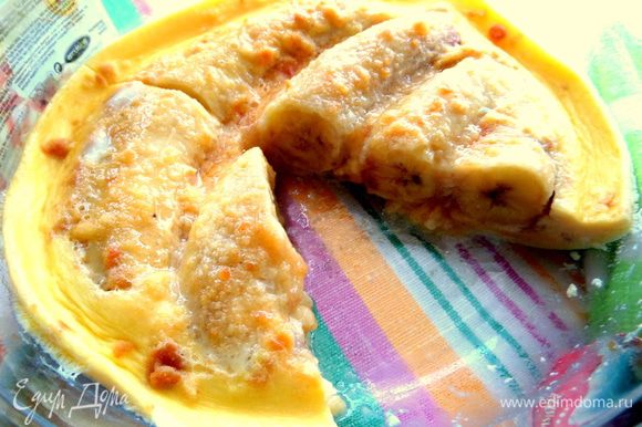 Вылить омлет на бананы. Сверху немного крошки.