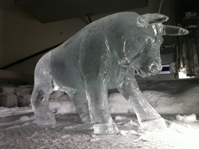 Работа ледяного скульптора. Справа видны технические линии для резки.