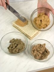 - 3http://www.mmenu.com/upload/iblock/7...825.jpg?w=stepСмажьте 4 пласта хлеба маслом, затем паштетом и паштетом с наполнителями. Чередуя по цвету, уложите смазанные пласты друг на друга, накройте пятым пластом. Поставьте торт в холодильник, положив на него сверху небольшой гнет.