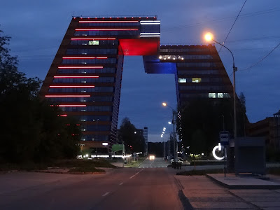 Направляемся дальше по проспекту Лаврентьева до улицы Николаева. На улице Николаева открывается вид на Центр информационных технологий Академпарка. В народе здание называют Гусятами, Башнями Близнецами и пр.