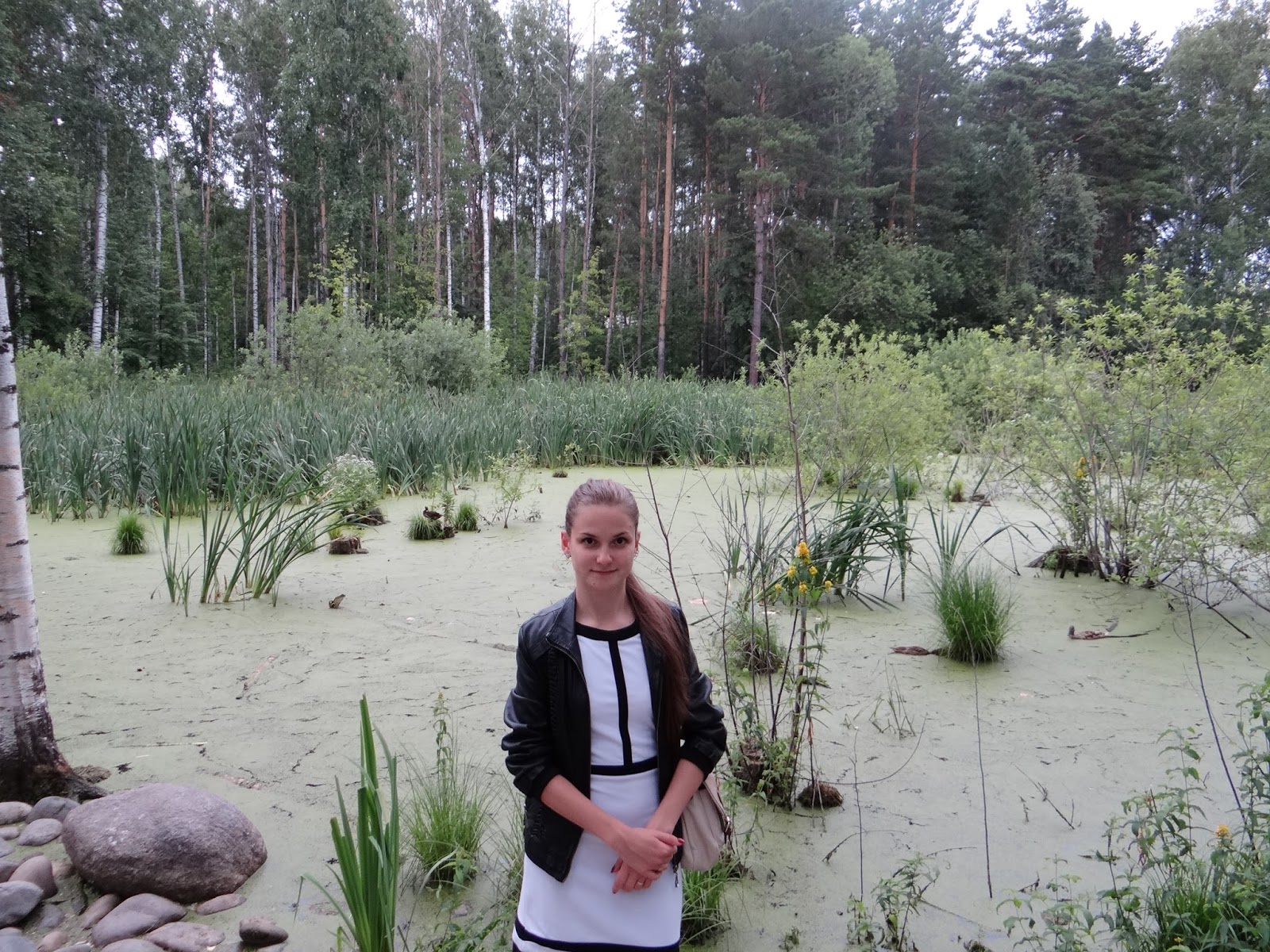 Пруд мелкий, заросший тиной. Вместе с утками плаваю бутылки. Также в этой экосистеме водятся лягушки, ежи, белки и еще какие-то грызуны.