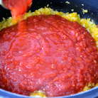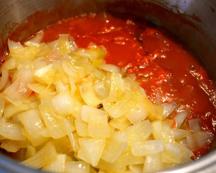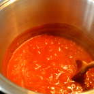 Добавить мякоть помидоров в собственном соку, довести до слабого кипения, оставить соус кипеть на слабом огне около 30 минут, время от времени помешивая, пока он не загустеет. При желании можно добавить немного сахара, это поможет снизить кислоту томатов... Я добавляю.