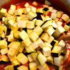 Увеличить http://www.gotovim.ru/imgs/dop/lupa.gifбаклажан - 1 шт.; цуккини - 2 шт.; порей - 1 шт.; перец (небольшой, советуют взять зеленый и красный) - 2шт.; чеснок - 2 зубчика; тимьян - 2 веточки; базилик - по вкусу; соль, перец - по вкусу; оливковое масло для жарки. http://imgs.gotovim.ru/pics/sbs/ratatuygial/01.jpg Все начинается с подготовки овощей. Как цуккини, так и баклажаны можно нарезать крупными кусочками или кружками. http://imgs.gotovim.ru/pics/sbs/ratatuygial/02.jpg Я нарезала кусочками. http://imgs.gotovim.ru/pics/sbs/ratatuygial/03.jpg Перец вот такими полосочками. http://imgs.gotovim.ru/pics/sbs/ratatuygial/04.jpg Помидоры необходимо освободить от семян и нарезать полосками. Порей я нарезала кружками, но можно покрошить меленько луковицу. Травки и чеснок меленько покрошить. Теперь можно приступать готовить рататуй. Для начала в небольшом количестве оливкового слегка подрумянила порей. http://imgs.gotovim.ru/pics/sbs/ratatuygial/05.jpg Затем добавила перец http://imgs.gotovim.ru/pics/sbs/ratatuygial/06.jpg Как только перец стал мягчать, добавила травки с чесноком. http://imgs.gotovim.ru/pics/sbs/ratatuygial/07.jpg Добавила соль и свежемолотый перец. И почти сразу же помидоры, накрыла крышкой и оставила тушиться под крышкой минут 20 на медленном огне. http://imgs.gotovim.ru/pics/sbs/ratatuygial/08.jpg Тем временем на другой сковороде с небольшим количеством оливкового масла минут 10 румянила баклажан. Затем добавила к ним цуккини и вместе еще румянила минут 10, иногда добавляя небольшое количество кипящей водички. Подсолила, поперчила и затем соединила с смесью перца и помидор.