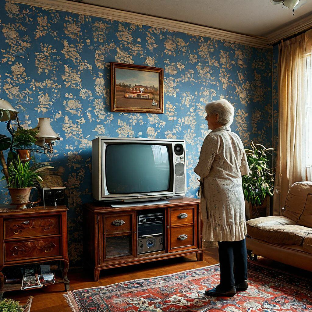 Квартира – в самый раз для одинокого холостяка. Совсем маленькая прихожая. Слева - комната небольшая, метров 14, оклеенная синими обоями. Деревянная кровать с синим полосатым матрасом, стол, стул, кресло, тумбочка с телевизором «Рекорд», шкаф платяной и книжная полка, зияющая пустотой.