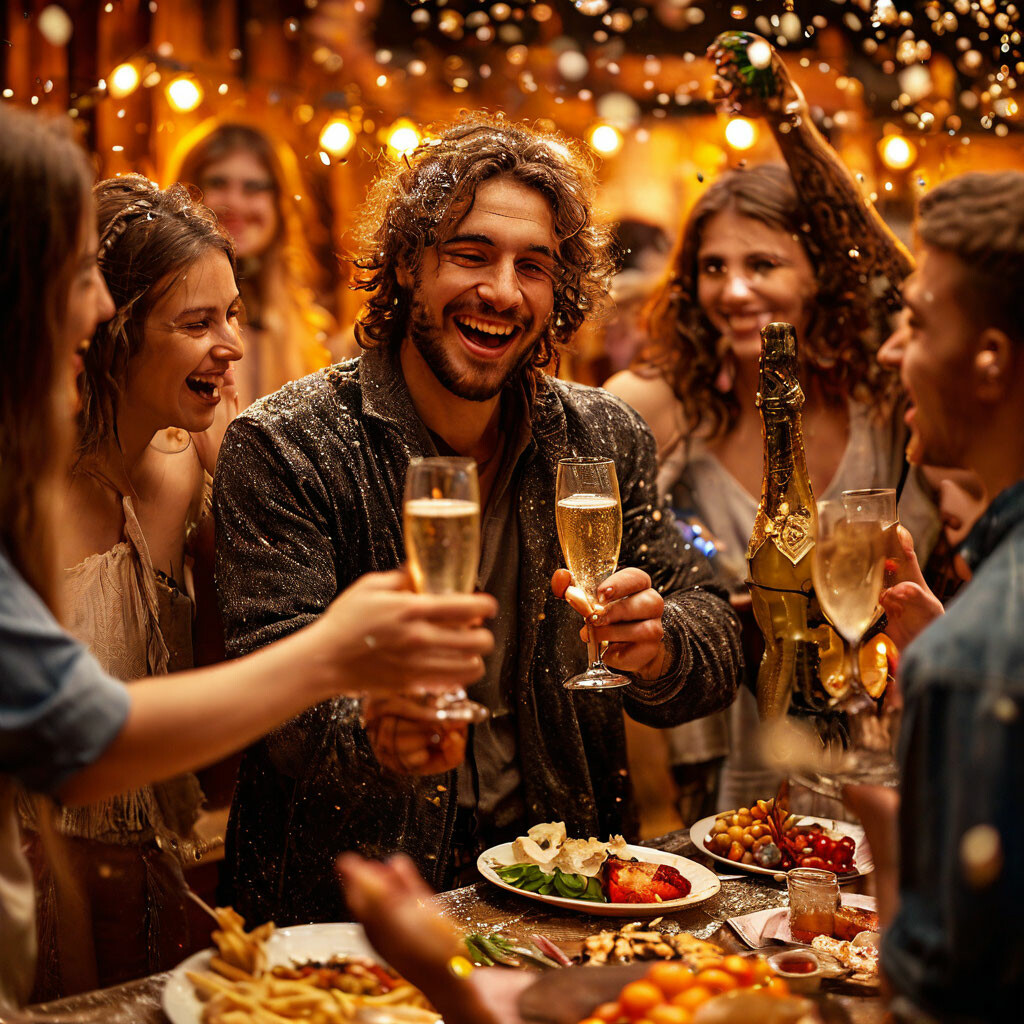 Стол, простите за банальность, ломился. Были на нём и красная икра, и того же цвета рыбка, и грибочки маринованные, и огурчики солёные, и корейская морковка, и копчёная колбаска и сыр, причём, какой-то особенный, дорогой, конечно же, традиционный оливье, рыба по-польски... Всего не перечислишь. Ну, напитки, конечно, тоже. И водка и коньяк и рябиновая настойка на коньяке и белое вино и красное и водка «Перфект», я уж не говорю о минералке, всяких там колах, спрайтах и проч. Чего только на столе не было? А не было на столе шампанского. Совсем. Вот всё было, а шампанского не было. Вот совсем не было. А Ей вдруг захотелось шампанского. Ну, вот захотелось женщине шампанского! И Она, окинув томным взором компанию, сказала: