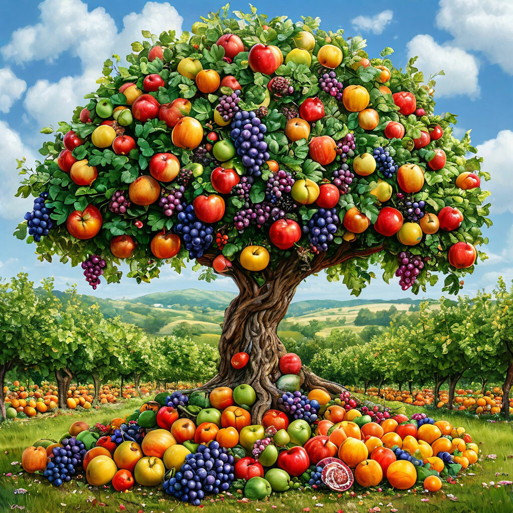 Зелёная фея посадила перед дворцом Рыцаря волшебное дерево. На дереве этом росли яблоки, груши, сливы, апельсины, мандарины, лимоны, арбузы, дыни, тыквы, а также всякие удивительные заморские плоды. И их даже не надо было срывать. Стоило посмотреть на плод как следует, и он сам срывался с дерева и падал прямо в руки.