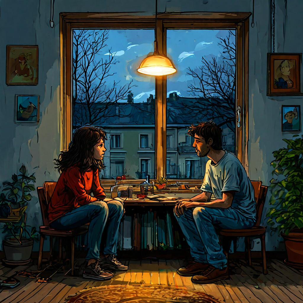 Просил нарисовать Петера спящим, положившим голову на руки. Отказывается. Ну, будем считать, что он пытается бороться со сном.Цитата:
