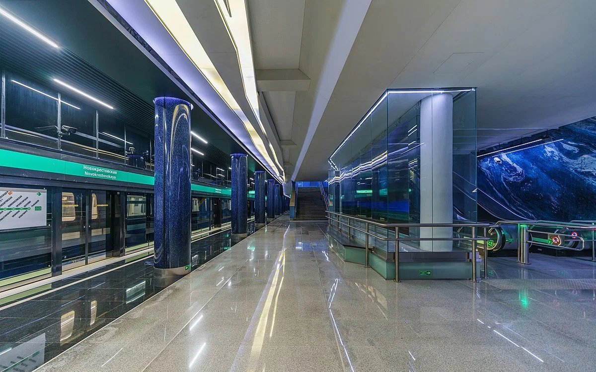 https://webpulse.imgsmail.ru/imgprev...c-b147e48ab7cdwiki2.orgСтанция, построенная на намывной территории и открытая в 2018 году к Чемпионату мира по футболу, за свою недолгую историю уже успела поменять название с Новокрестовской на нынешнее. Ее вестибюли находятся в очень странном месте - на берегу Невской губы у домашней арены ФК "Зенит", причем с обратной стороны от главных входов стадиона. Городской транспорт к станции не подходит, а основной пассажиропоток составляют лишь футбольные фанаты в дни матчей. Ее востребованность была бы выше, будь она расположена хотя бы на площади перед стадионом.