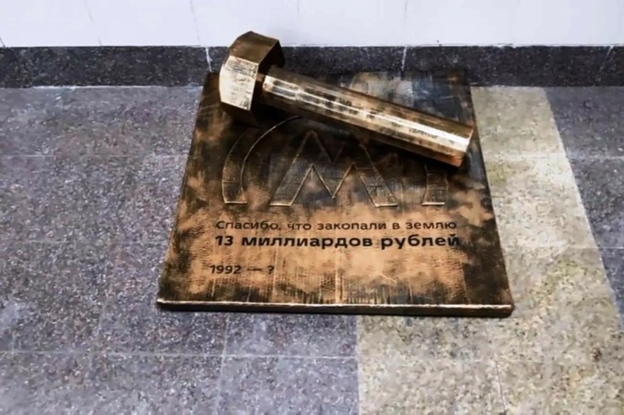 Одна из интересных инсталляций – это скульптура гигантского болта, на которую нанесен знак метрополитена. Так жители выразили отношение к бесполезной трате средств на объект, который не запустили в эксплуатацию.