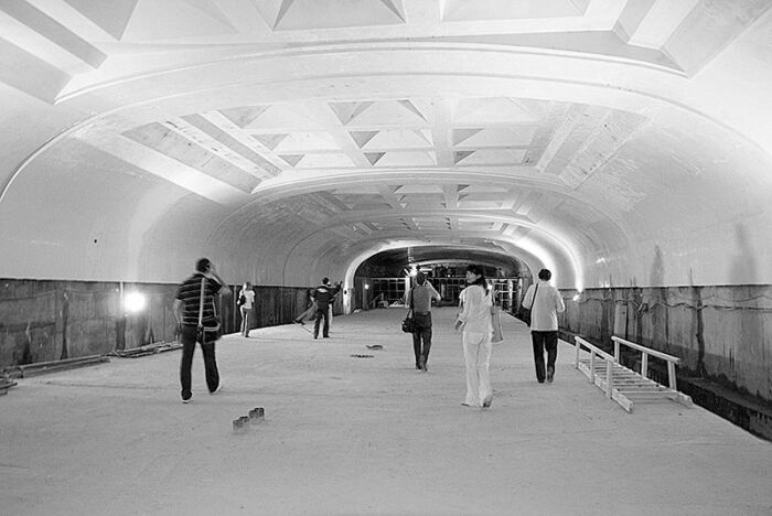 Нужно было что-то делать в срочном порядке, чтобы устранить учиненный бедлам. И власти нашли выход – законсервировать объект. Тоннели, построенные открытым методом, просто засыпали. Станция «Библиотека им. Пушкина» стала подземным переходом.