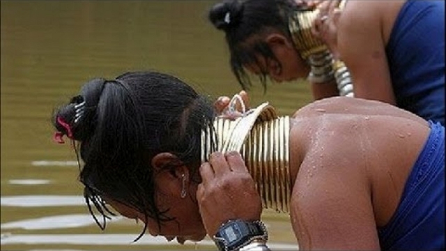 В Бирме женщину наказывали очень просто – с малолетства девочкам надевали на шею кольца, с каждым годом количество которых увеличивалось. Шея вытягивалась до невероятных размеров и они могли посоревноваться с самими жирафами. Так вот, в Бирме за любой вид измены, в том числе и оральной, женщине снимали кольца, и она умирала от перелома шеи.