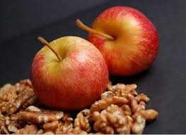 Яблоки, грецкие орехи, семечки, бутерброды с бужениной.