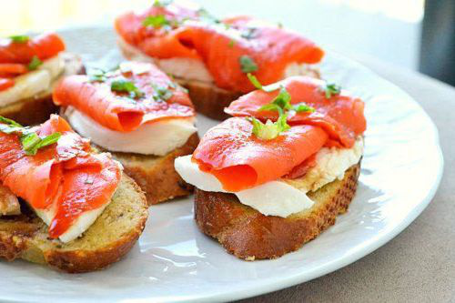 9. Хрустящие бутерброды с моцареллой и копченым лососем (кростини)