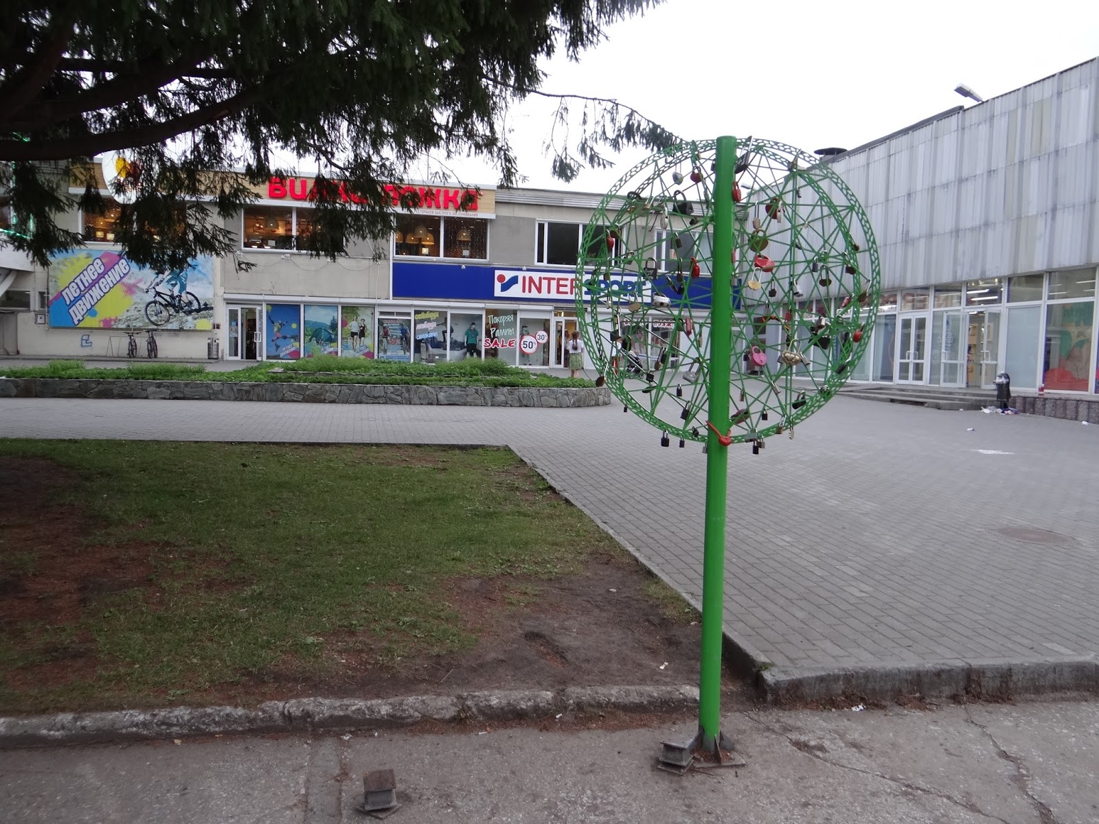 От НГУ далее совершаем променад по улицы Ильича в сторону Морского проспекта. Следующая цель - Лавочка любви и примирения. Лавочка рядом с Торговым центром по адресу Ильича 6 к1, где вход в Вилку-Ложку (координаты 54°50′20.18″N 83°5′46.72″E).