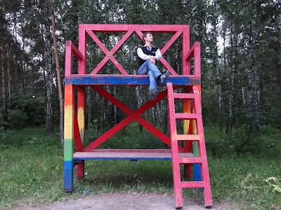 Давно следил за проектом "Арт-лавочки Академгородка". А тут выпал теплый воскресный вечер для прогулок по Академгородку. Конечно же решили прогуляться по необычным и нестандартным лавочкам.