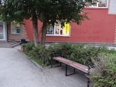 Обошли пруд по кругу несколько раз и направились по улице Мальцева к Морскому проспекту. На пересечении этих улиц (Морской проспект 33 / Мальцева 1) находится еще одна необычная Большая Красная лавочка (координаты 54°50′0.95″N 83°5′40.93″E).