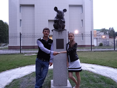 Шесть лавочек просмотрены, осталась последняя, которая находится отдельно от остальных. До нее надо прогуляться. От Большой Красной лавочки мы идем по Морскому проспекту до улицы Ильича, по Ильича до проспекта Академика Коптюга. И в конце проспекта доходим до Института цитологии и генетики СО РАН (адрес проспект Академика Лаврентьева 10 или проспект Академика Коптюга 2). За институтом находится необычный памятник лабораторной мыши, вяжущей нить ДНК (координаты 54°50′55″N 83°6′24″E).