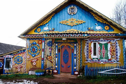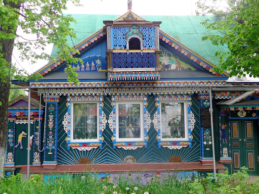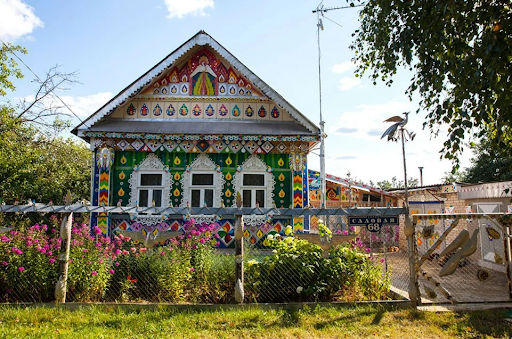 В Подмосковье есть небольшое село Кошерово, там живет Мастер с большой буквы — Андрей Фомичев. Он превратил свой небольшой домик в настоящий шедевр, расписав его яркими красками, украсив резными наличниками и другими деталями. Радует, что такая красота не осталась незамеченной, и в 2018 году дом даже занял третье место на муниципальном конкурсе лучших сельских домов.