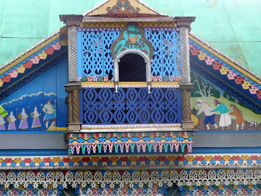 Этот волшебный дом находится в селе Васильевское на Урале. На протяжении 10 лет мастер-самоучка Николай Бахарев украшал свой дом резными деталями и сказочными мотивами. Вот, что он сам рассказывал о своем увлечении: «Всю жизнь я работал шофером в колхозе. Оформлением занимался в свободное время. Подумал однажды, что дом мой похож на все остальные – ободранный, старый, серый – некрасиво это. Решил выделиться. Я вообще-то мастером себя не считаю. Любитель и только». Эх, если бы все у нас были такими «любителями»!