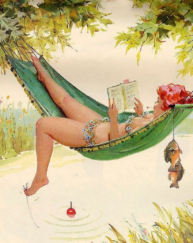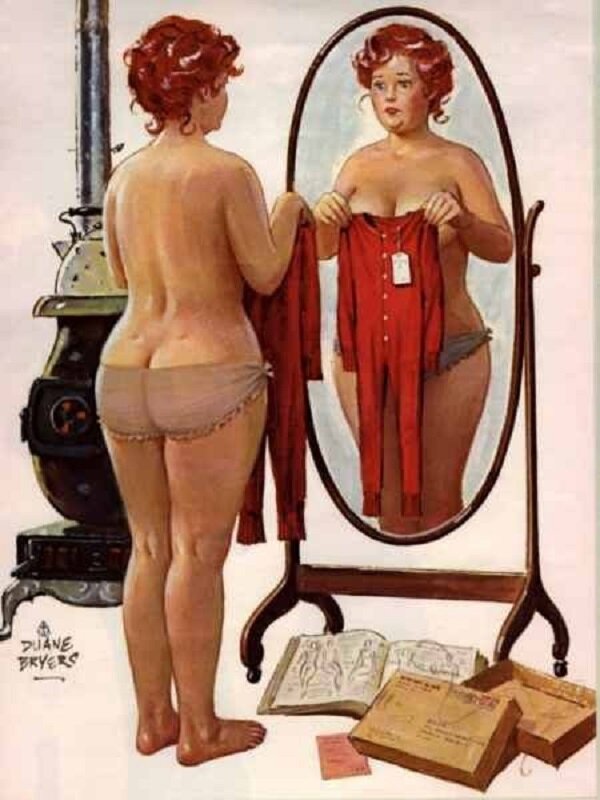 Конечно же, как и любому художнику, Брайерсу хотелось создать нечто шедевральное. И так в 1958 году появилась Хильда. Да, это не тициановская Даная и не Мона Лиза, но перед очарованием жизнерадостной пышки не устоять. Стоит отметить, что у Брайерса было отличное чувство юмора. И уж очень интересными получились истории, в которые вовлекал автор зрителя.