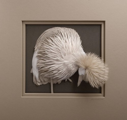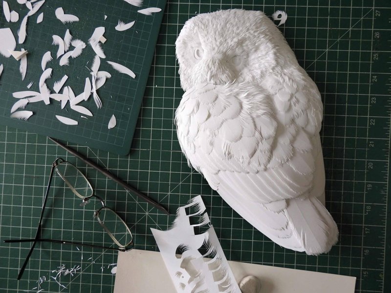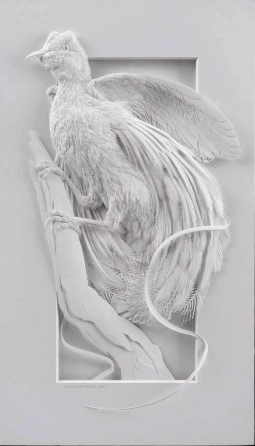 Даже не верится, что эти ювелирные работы выполнены из бумаги. Художественная ювелирная резьба скальпелем по бумаге – вот что такое paper art от Maude White! Более тысячи мельчайших прорезных отверстий в каждом арт объекте! В своей общей массе они создают полную иллюзию определённой текстуры – будь то перья или что-то твёрдое и жёсткое. Листы бумаги, под её руками, превращаются в фигуры животных, птиц, людей, в растения или, даже, в тематические или исторические образы.
