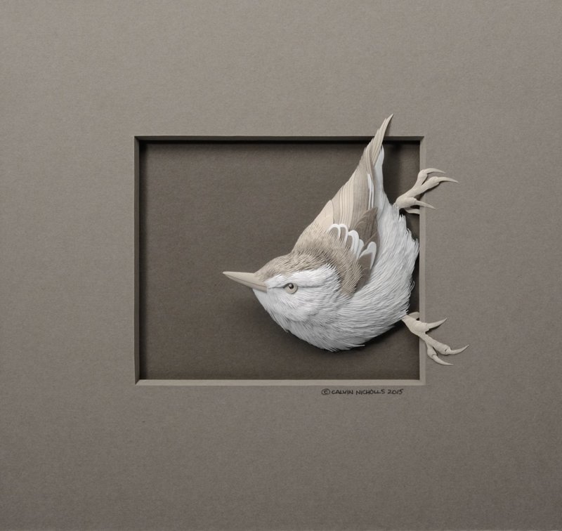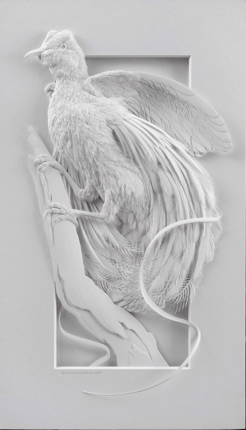 Канадский художник Calvin Nicholls создает удивительно красивые скульптуры используя только белый лист бумаги. "Кальвин создаёт скульптуры из бумаги с 1986 года в своей мастерской к северу от Торонто, Онтарио, Канада. Работая с листами бумаги и скальпелем, он вырезает детали композиции с учетом окончательного чертежа и, только затем монтирует в рамку. Когда скульптура готова, регулируется осувещение перед тем как сфотографировать результат. Такая подготовительная работа необходима чтобы подчеркнуть легкость формы и текстуру скульптуры.