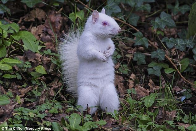 Фотограф-любитель дикой природы 54-летний Тим Клифтон во время прогулки в парке графства Восточный Сассекс на юге Англии смог сделать фото редкой белки-альбиноса.
