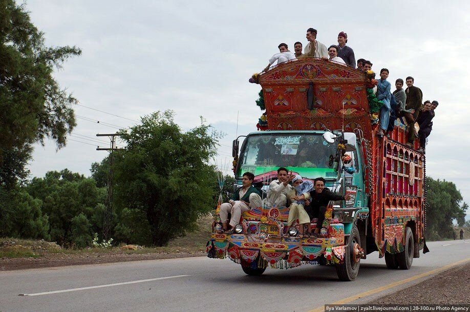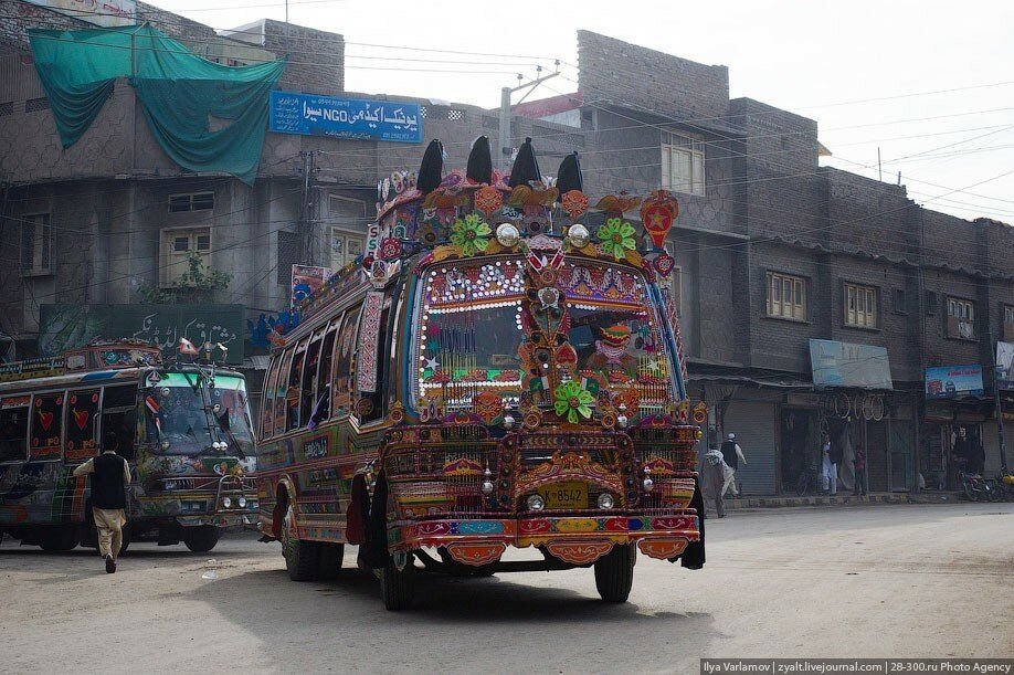 Если наш сотрудник автоинспекции увидит на дороге такое чудо, с ним может приключиться удар. Нечто переливающееся, красочное, звенящее колокольным звоном и звуками трещоток, обвешенное гирляндами с внушительной короной на кабине — с первого раза такую "гравицапу" сложно идентифицировать. Похоже на какой-то восточный дворец на колесах, некий передвижной караван-сарай с завлекающими вывесками. А вот в Пакистане такие машины — это повседневность. Там на дорогах (особенно сельских) не встретить обычных грузовиков или автобусов. Каждая машина являет собой настоящее произведение искусства с богатой яркой росписью всего, до чего можно дотянуться.
