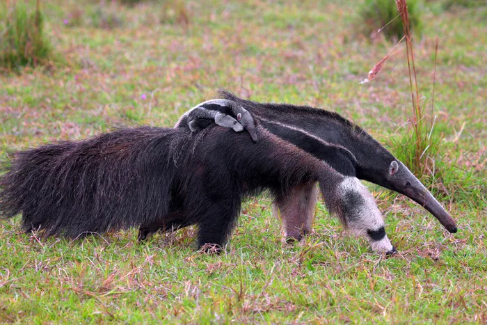 Самки гигантского муравьеда прекрасные матери, которые носят своих детёнышей на спине, и не расстаются с ними до следующей беременности.